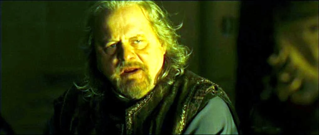 Godfrey wehrt ab, das sei nicht weiter wichtig und verlässt die Tafel, sieht aus dem Fenster zur Schmiede hin und wird wieder nachdenklich. Sein Bruder beugt sich zu seinem Sohn und brummt: "Vor sechsundzwanzig Jahren nahm mein Bruder das Kreuz. Und jetzt kehrt er zurück ... als wahrhaftiger Baron des Königreichs von Jerusalem. Was für ein Los trägt man dort als jüngerer Bruder! Ohne einen Erben fällt sein Besitz mir zu - also auch dir."